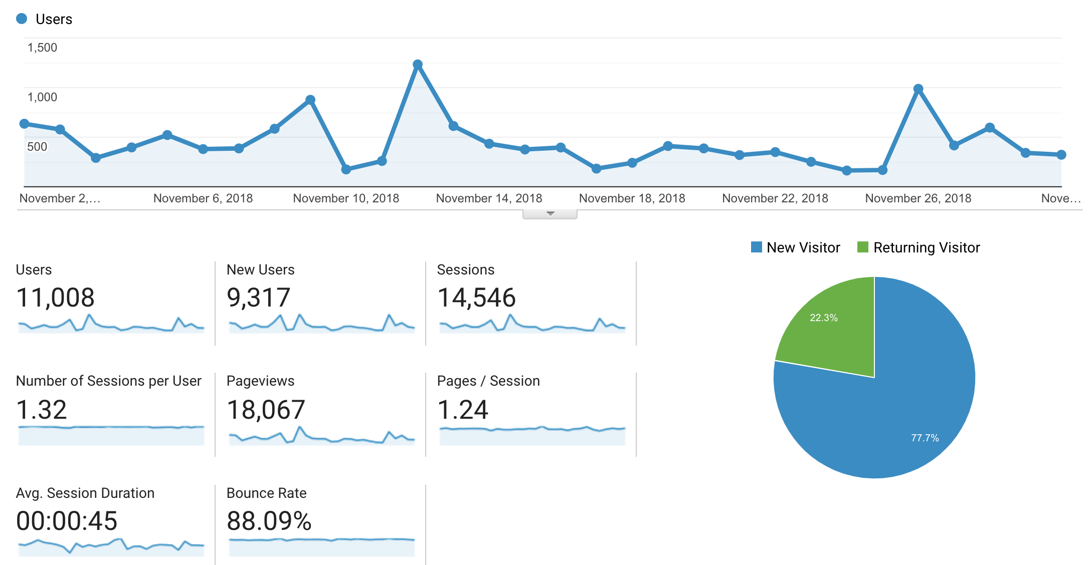 Written on 2019-01-22I've been running this blog for almost three years now. I've used Google Analytics, not only to track the amount of users, but also to actively improve my blog.
