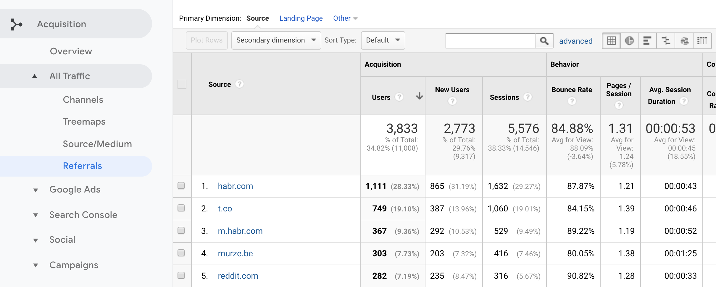The "Referrals" page under Acquisition > All Traffic is an important one to know where your traffic is coming from.