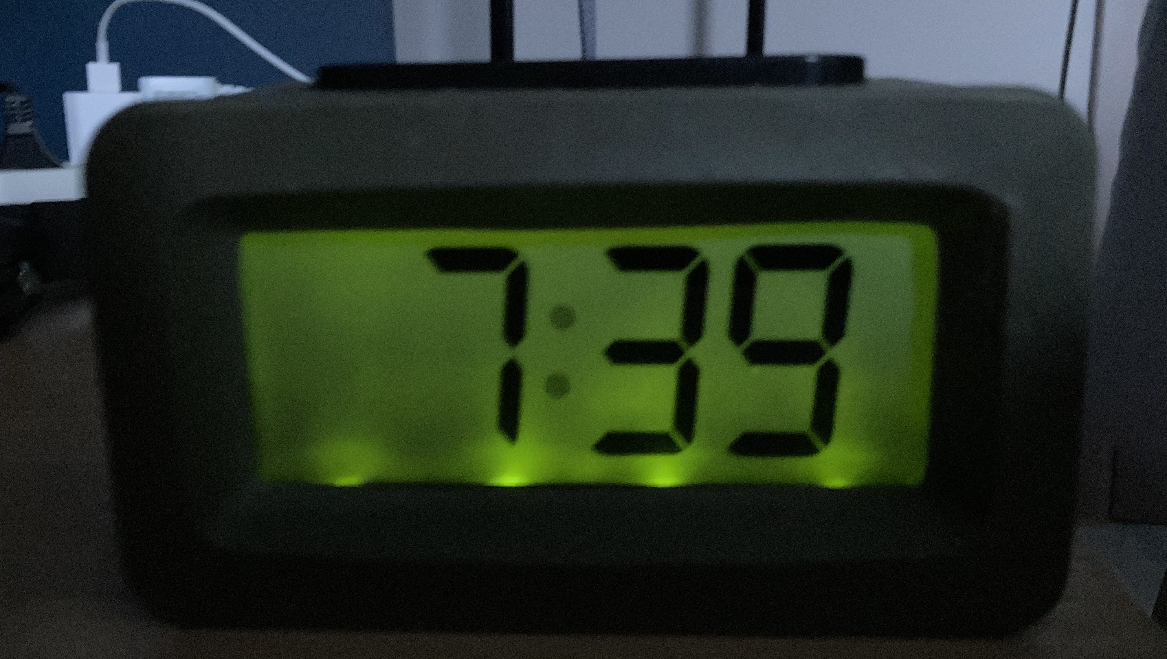 - It has a very dim backlight, which only shows for a short period when you press the giant button on top. So there's no additional light in your room while sleeping.