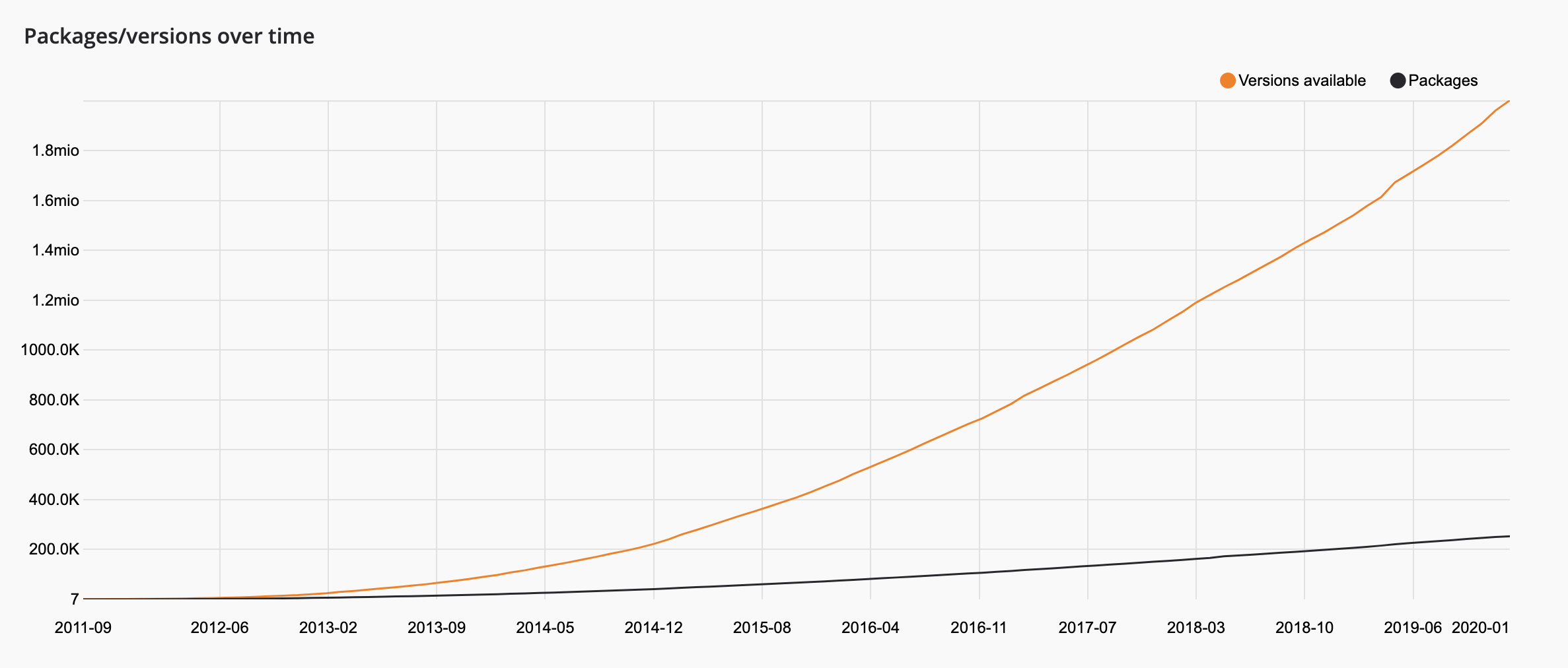 One way to measure the current state of PHP's ecosystem is to look at Packagist, the main package repository for PHP. It has seen exponential growth. With ±25 million downloads a day, it's fair to say that the PHP ecosystem isn't the small underdog it used to be.