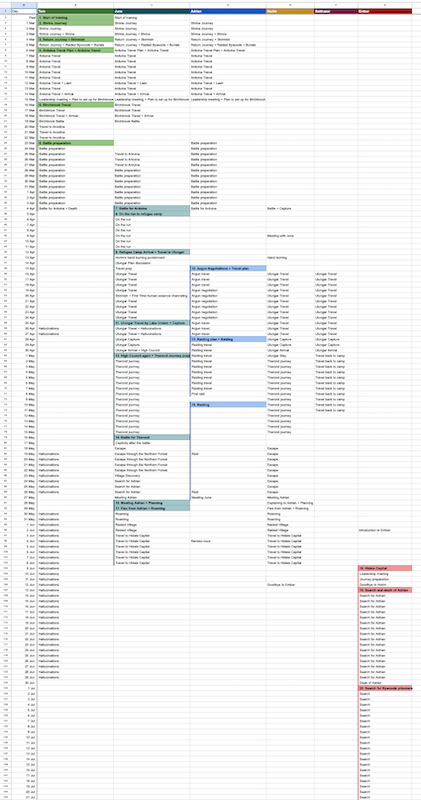There's actually another novel I'm writing, which I haven't talked about in public yet. It has a pretty complicated timeline as well (yes, I blurred it on purpose):