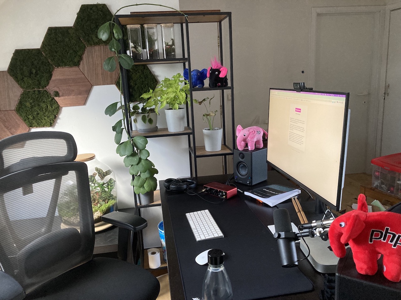 In between taking care of the kids and the house, I did find a couple of hours to redo my home office setup! I don't know why, but once or twice a year I get this urge to redecorate it. I usually just move my desk and plants around, but this time I also created a dedicated recording corner and got a bigger desk — which is really amazing, my previous one was too small.