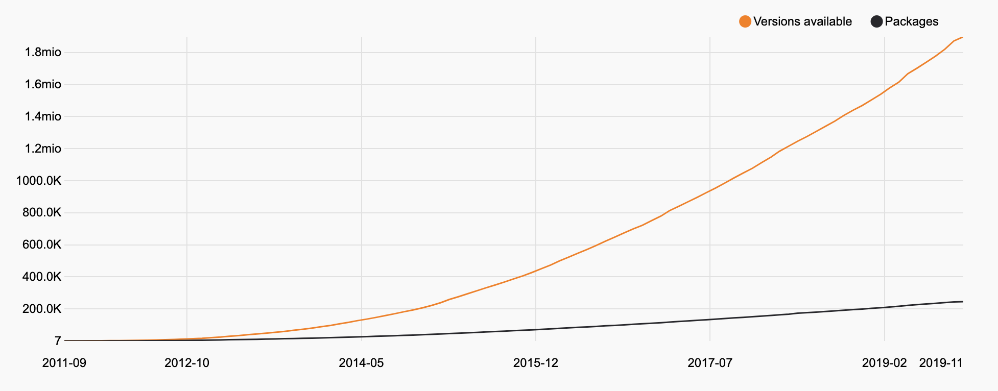 One way to measure the current state of PHP's ecosystem is to look at Packagist, the main package repository for PHP. It has seen exponential growth. With ±25 million downloads a day, it's fair to say that the PHP ecosystem isn't the small underdog it used to be.