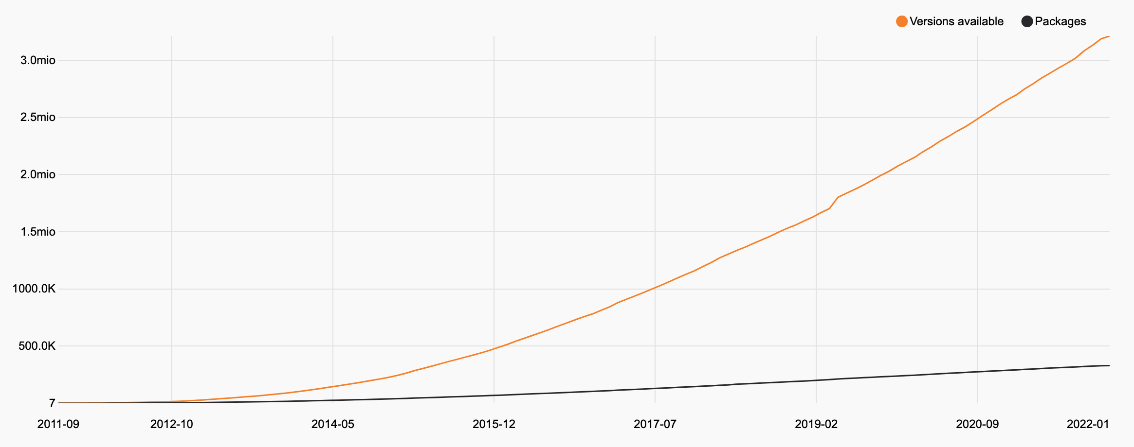 Just like every year, I can't go without mentioning Packagist, now with over 3 million registered versions and more than 300.000 packages. As you can see, the ecosystem just keeps growing and growing, 2022 won't be any different.